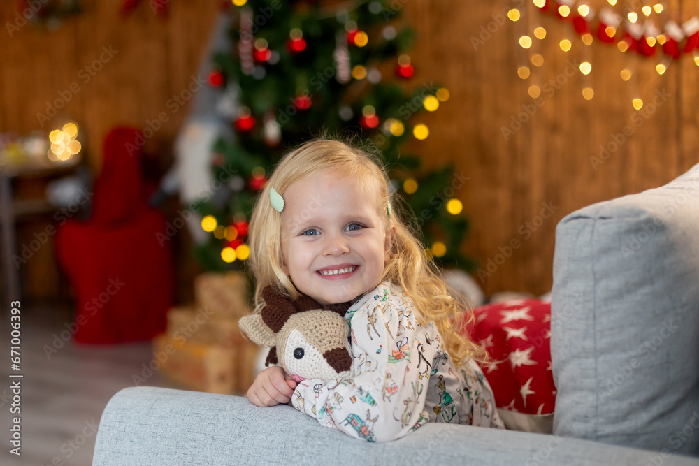 Beautiful children, blond kids, siblings, playing in decorated home for Christmas, enjoying holidays