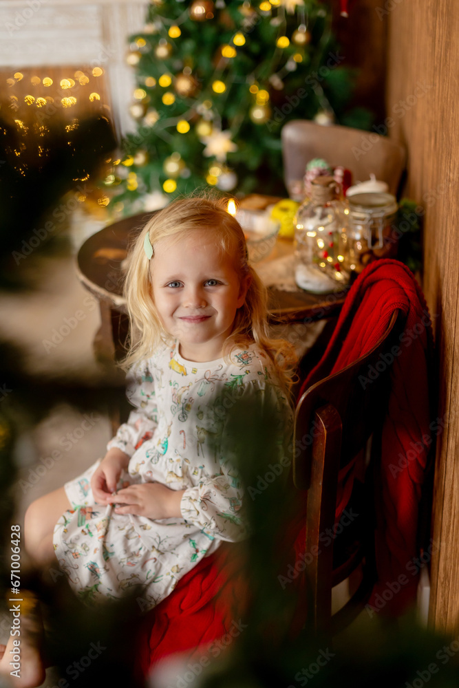Beautiful children, blond kids, siblings, playing in decorated home for Christmas, enjoying holidays
