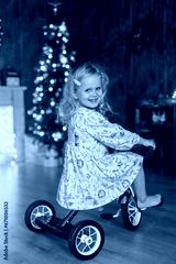 Beautiful children, blond kids, siblings, playing in decorated home for Christmas, enjoying holidays