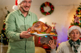 Family celebration party enjoy happy to eat dinner together with full food of turkey and drink for celebrate merry xmas in Christmas thanksgiving and New Year festive. Christmas dinner group family.