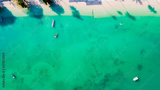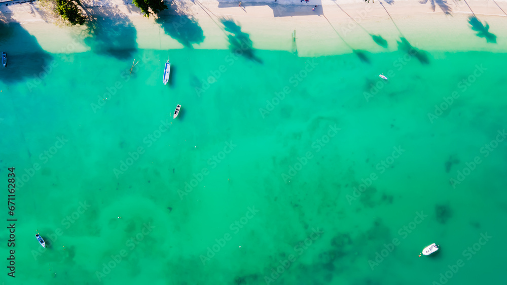 Aerial view of the beach. Comfortable for the eyes. Beautiful coastal sea and open sea in summer, nature recovers environment and tourism background, at Ao Yon Phuket Thailand.