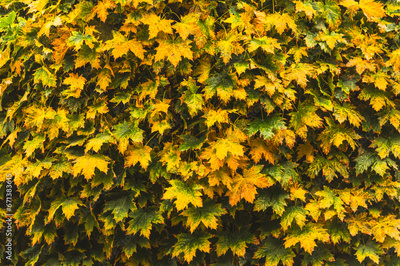 Bright yellow-green maple leaves in autumn.Selective focus, earth tones,natural foliage background.