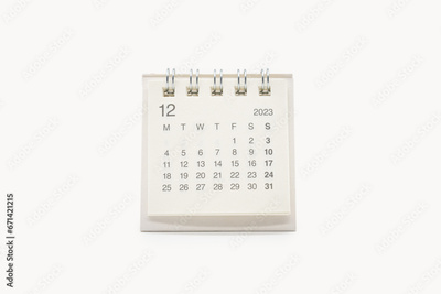 Simple desk calendar for December 2023 isolated on white background. Calendar concept with copy space.