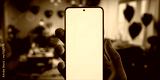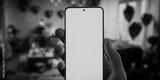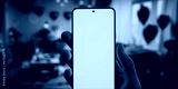 Caucasian male using a phone in the apartment decorated for valentines day date