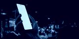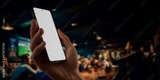 CU Caucasian man using phone inside a sports bar, online betting, bookmaker
