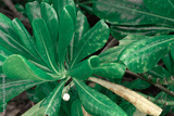 Beach naupaka, Scaevola taccada, or sea lettuce branch with green shiny leaves.