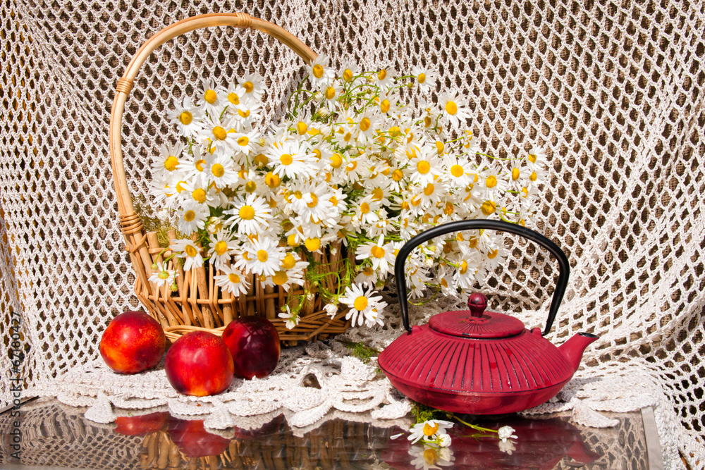 still life of chamomilies bouquet