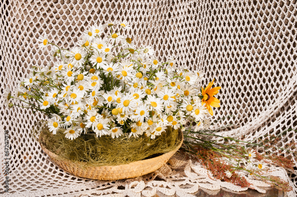 Still life with chamomiles