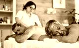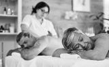 Relax, senior and a couple at the massage salon together for peace, wellness or bonding. Luxury, beauty or body care with an old woman and man in a spa for physical therapy or treatment at a resort