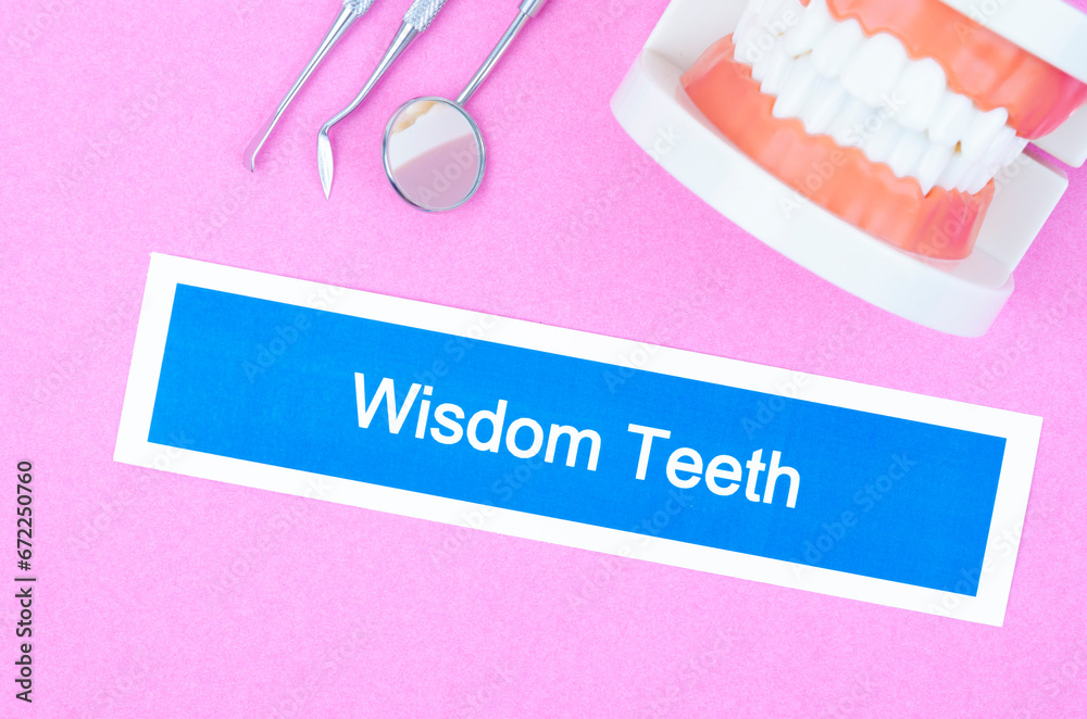 Wisdom Teeth dental disease and teeth model with tools.