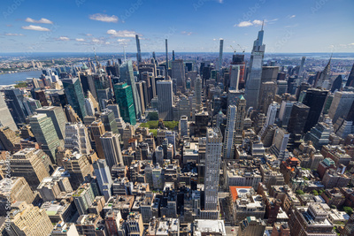 High angle, elevated view of North Manhattan and the Hudson river taken from the Empire State building, New York City, USA