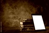 Old yellowed books with self-designed tablet computer