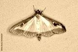 Box Tree Moth (Cydalima perspectalis), moth and caterpillar on common boxwood (Buxus sempervirens). Invasive species.