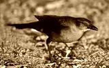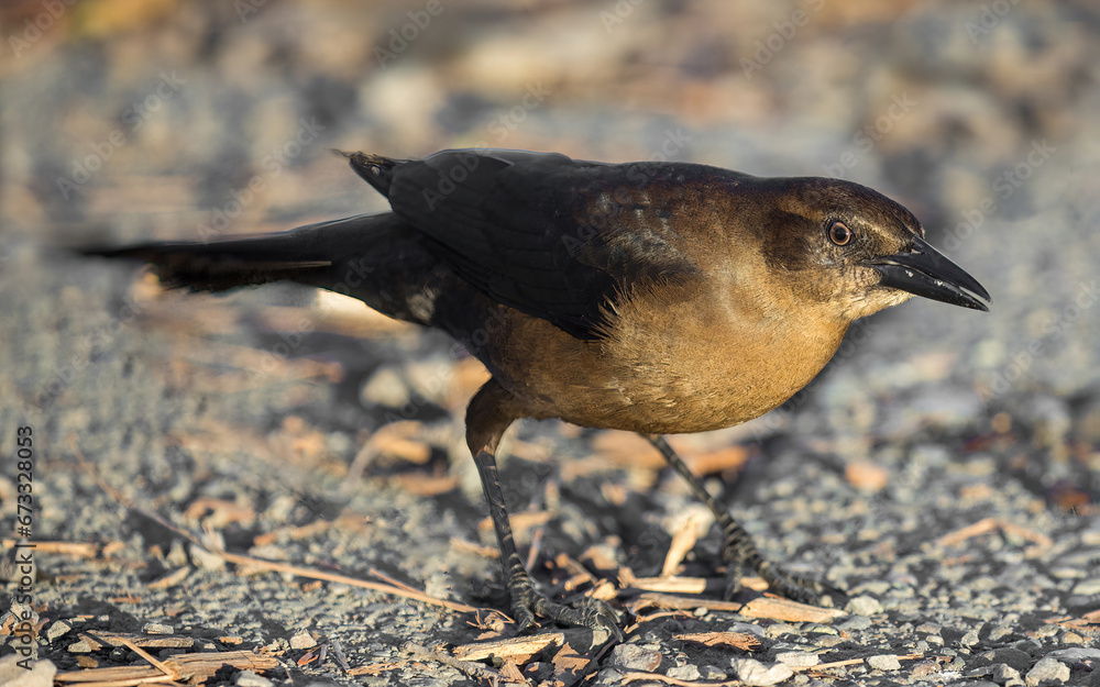 Great-tailed Grackle, female, foraging on the ground. Lake Elizabeth, Alameda County, California.