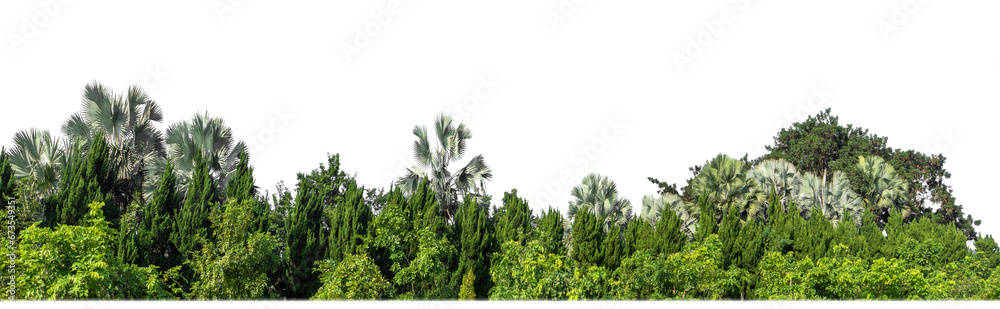 Green Trees on transparent background. are Forest and foliage in summer for both printing and web pages with cut path and alpha channel