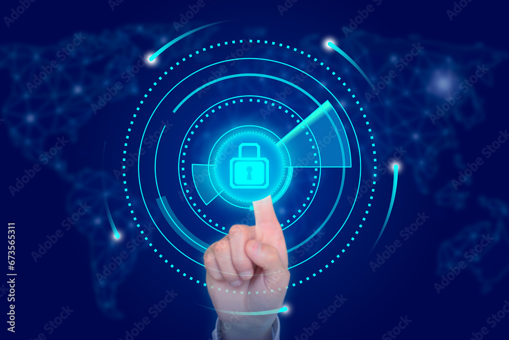 Touch the cybersecurity and privacy concept lock icon
