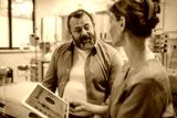 Female doctor consulting with overweight patient, discussing test result in doctor office. Obesity affecting middle-aged men's health. Concept of health risks of overwight and obesity.