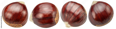 Edible sweet chestnuts with roasted chestnuts isolated on white background.