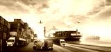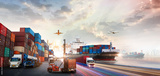 Industrial Container Cargo freight ship, forklift handling container box loading for logistic import export and transport industry concept