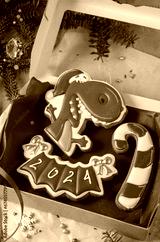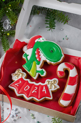 Box of Gingerbread Cookies, Set of Christmas Treats on Bright Background