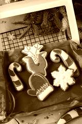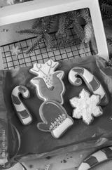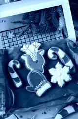 Box of Gingerbread Cookies, Set of Christmas Treats on Bright Background
