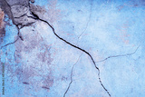 Blue texture grunge background. Old cracked crumbling painted wall