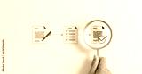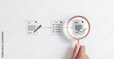 Magnifying glass focus to Approve document icon on white background for business process workflow illustrating management approval and and project approve concept.