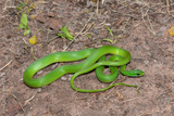 Close-up of a beautiful Green Water Snake (Philothamnus hoplogaster) near a pond