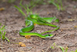 Close-up of a beautiful Green Water Snake (Philothamnus hoplogaster) near a pond