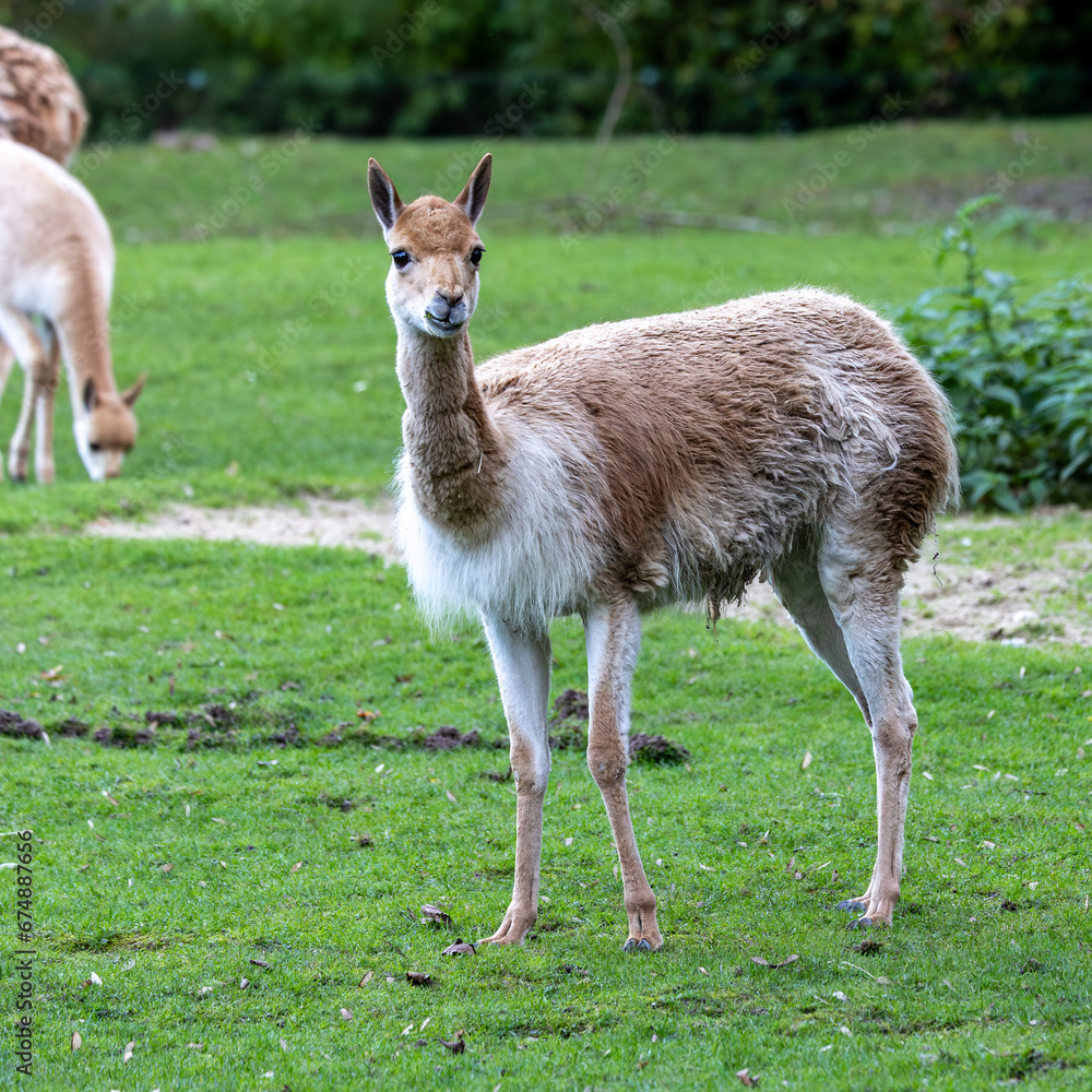 Vicunas, Vicugna Vicugna, relatives of the llama in a German park