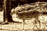 Chital or cheetal deer, Axis axis, also known as spotted deer or axis deer .