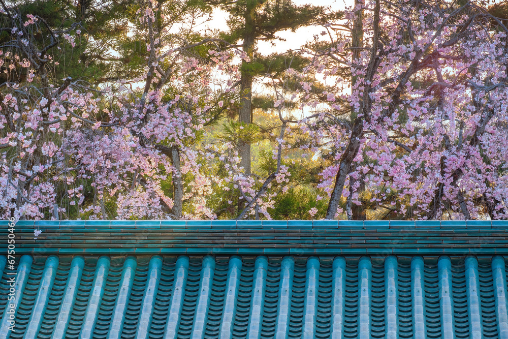 Kyoto, Japan - April 2 2023: Heian Shrine built on the occasion of 1100th anniversary of the capital's foundation in Kyoto, dedicated to the spirits of the first and last emperors who reigned the city