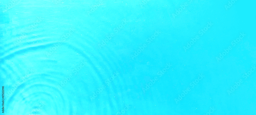 Transparent blue color water ripple with copy space. Defocused and blurred surface with splash, bubble and shining.