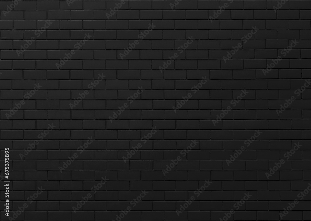 Black brick wall background. Brick wall is painted with black paint. Dark abstract background for design.