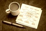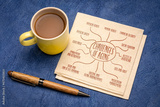 challenges of aging infographics or mind map sketch on a napkin with coffee, senior lifestyle concept