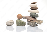 pyramid of stacked stones on a white background. stabilization and balance in life