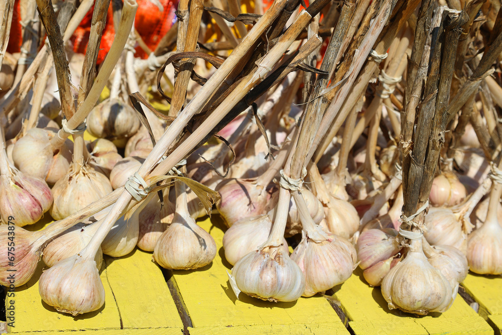Garlic (Allium sativum) is a species of bulbous flowering plant in the genus Allium. at the Jean-Talon Market is a farmer's market in Montreal. Located in the Little Italy district