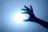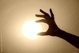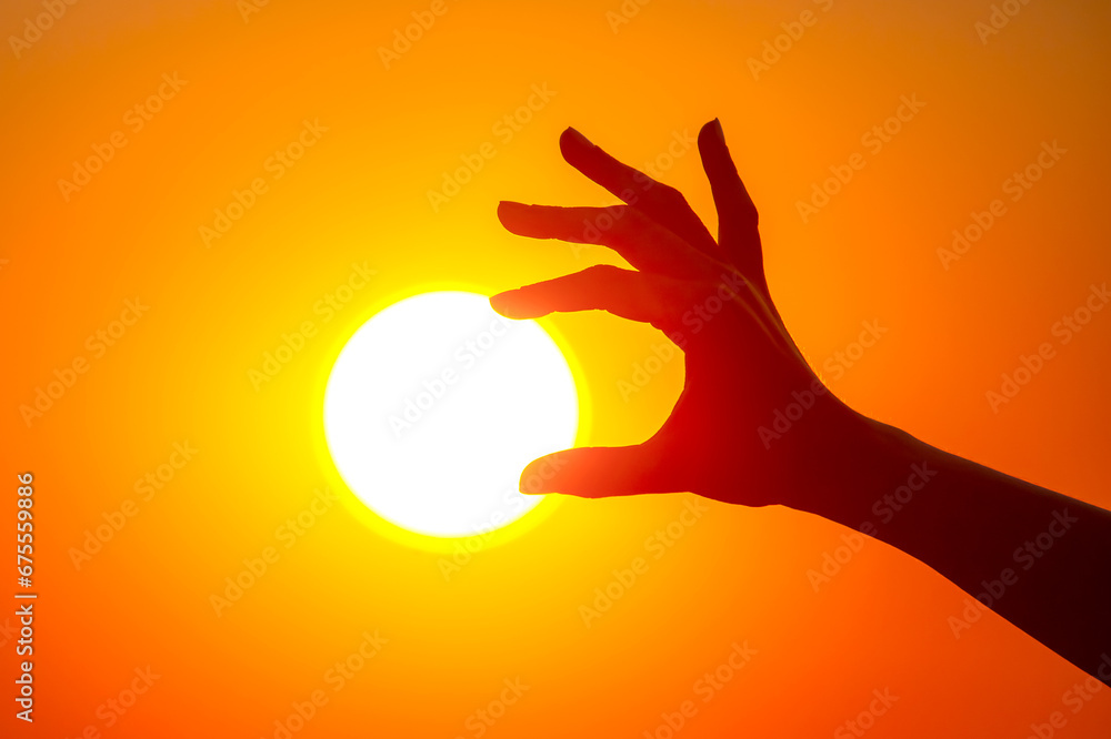 silhouette of a hand against the background of the evening sun