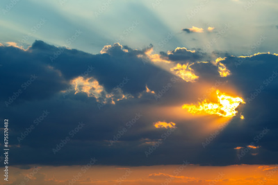 brightly colorful clouds in the evening sky. Lush colored clouds in the sky before sunset