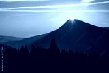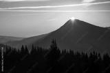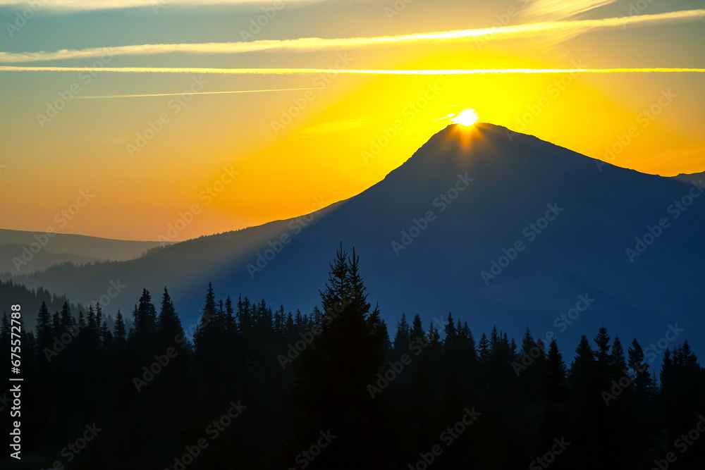 Morning sunrise over the top of a mountain in the Ukrainian Carpathians