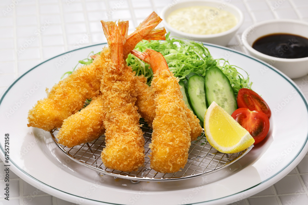 Japanese Ebi Fry is shrimp that has been peeled, coated in flour, dipped in egg batter, then breaded and fried in oil.