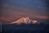 Morning landscape on peaks of Mount Elbrus. Big high mountain covered with snow, Caucasus Mountains, Russia