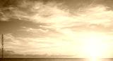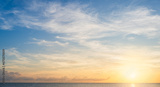 sunset sky over the sea in the morning with orange sunrise clouds