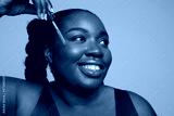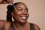 Studio shot of smiling young woman applying face serum