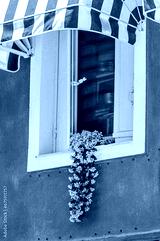 Pink Flower Adorning Old Windowsill in Picturesque City of Parga, Greece. A Glimpse of Western Greek Tradition with Rustic Elegance.