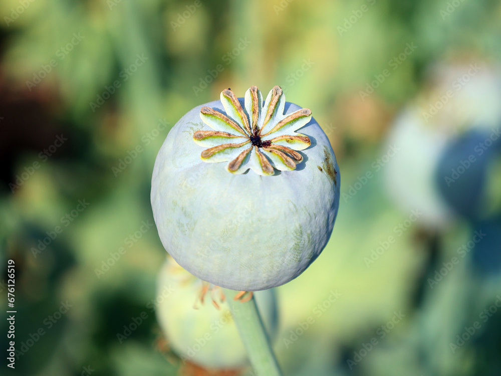 Harvest of opium from green poppy on the agriculture field rural Rajasthan India