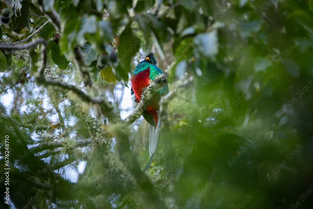 The resplendent quetzal in the beautiful nature habitat. Amazing bird full of colours. Costa Rican wildlife and nature pictures. Symbol of Costa Rica. Pharomachrus mocinno.