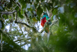 The resplendent quetzal in the beautiful nature habitat. Amazing bird full of colours. Costa Rican wildlife and nature pictures. Symbol of Costa Rica. Pharomachrus mocinno.