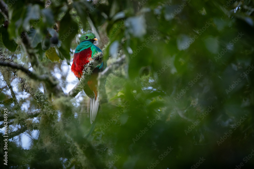 The resplendent quetzal in the beautiful nature habitat. Amazing bird full of colours. Costa Rican wildlife and nature pictures. Symbol of Costa Rica. Pharomachrus mocinno.