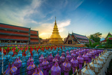 Beautiful Lanna lamp lantern are northern thai style lanterns in Loi Krathong or Yi Peng Festival at Wat Phra That Hariphunchai is a Buddhist worship temple It a tourist attraction Lamphun Thailand.